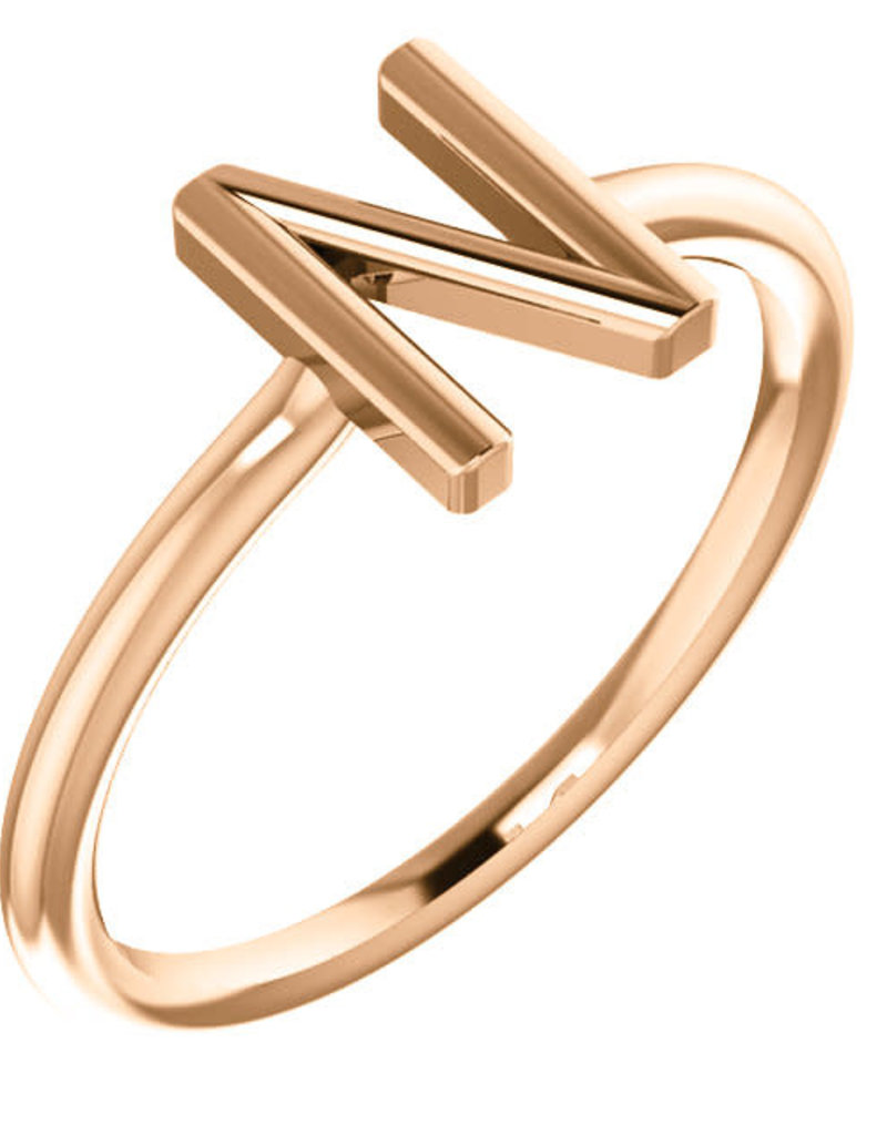 14k Rose Gold N Initial Stackable Ring Size 7 5 American Jewelry
